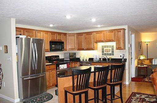 Best of both worlds in this young, expanded, super energy efficient end unit w/all the space & upgrades you could dream of! 2 bay garage, first floor laundry, gorgeous kitchen w/SS appliances, granite counters, center island/breakfast bar, double sink, tiled floors, & custom built-in cabinetry for all your storage & pantry needs! Beautiful feature wall w/gas fireplace & gleaming hardwood floors leading to your 12x12 deck perfect for entertaining or gardening! Open concept dining area/living room flows with ease from the kitchen and includes a private bonus room great for home office/exercise room/den. 2nd flr hall continues w/hardwood floors and plenty of sunlight! Master bedroom w/ walk in closet, full wall of windows & access to your master bath suite w/double vanity, shower stall, toilet closet and full tub. Even more space in your finished walk out basement with 3/4 bath, large utility room w/storage, central vac and 99.3% efficiency furnace! Pet friendly, 55+ community