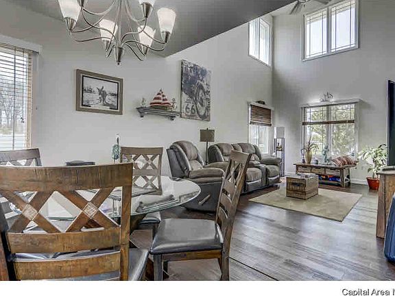 Lakefront living at its finest w/this immaculate, fun vibe home. Abundance of triple pane windows allowing natural light throughout, from the 2-story great room to the upper level loft; great for office or hobby area. Spacious kitchen & dining area featuring, tile, granite, back splash, appliances, & breakfast bar. Private master bed & bath w/plush flooring & double walk-in closets. Finished walk-out lower level w/views! Screened in deck, patio, & heated garage. Great 1 mile trail around lake and marina, stop for lunch at the boat dock marina. Maintenance free exterior & Lawn/Landscape.