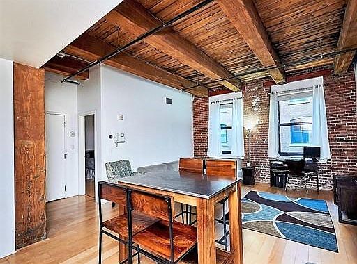 Exceptional brick and beam one bedroom loft in the luxury Court Square Press Building, ideally located steps to the T and all the best of South Boston. The updated kitchen with stainless steel appliances, granite counters and maple cabinets opens onto a generous living/dining room that can also accommodate an office area. Spacious king-sized bedroom with walk-in closet, washer/dryer in unit, central air with Nest thermostat, high ceilings, and hardwood floors throughout. Building amenities include 24/7 concierge, elevator, 20,000 square foot roof terrace with heated lap pool and gas grills, screening/function room, on-site property management and fitness center. Easy access to the Broadway T stop, shops and restaurants, Whole Foods, the SOWA market, the Seaport, Downtown and I-90 and 93. Includes one garage parking space!