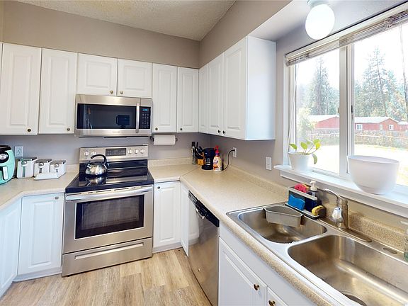 Welcome to 9 Western Juniper, this lovely 2112 Sq Ft home in Saint Regis is on .5 acres with fully fenced backyard and detached double garage. Upstairs is 2 bedrooms and full bathroom, kitchen with new stainless steel appliances and sliding glass door out to the fenced back yard. Downstairs you have 2 bonus rooms, one of them being very large and used as a bedroom with ensuite full bathroom. Some updates to this home include new roof in 2020, new propane furnace in 2018, exterior completely repainted 2024, new flooring throughout in 2020/ 2024.