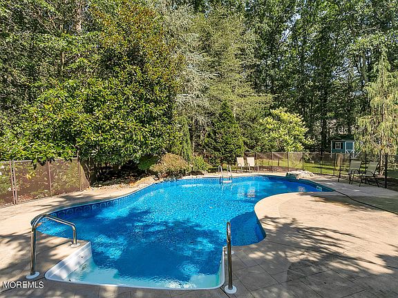 Welcome to your dream home in the prestigious Clover Hill section of Colts Neck, NJ! This stunning 4-bedroom, 2.1-bath residence offers luxurious living with an open expansive kitchen featuring new Café appliances. Enjoy outdoor living with a deck, pool, and lush landscaping in the fenced-in backyard. Inside, the home boasts a full finished basement, perfect for recreation or extra living space. The new CertainTeed siding enhances durability and curb appeal. Each bedroom includes custom built-in closets and ceiling fans for comfort. The study is equipped with built-ins, creating an ideal workspace. With three fireplaces, this home exudes warmth and charm. Additional features include a 2-car garage and ample storage.