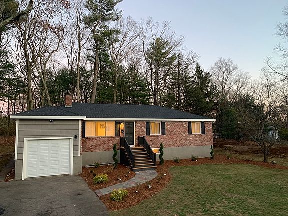 Offers due 11am Tuesday 11/24. Opportunity to own renovated spacious ranch in popular Nobscot neighborhood with endless possibilities. Freshly painted interior and exterior with new roof. Beautifully refinished hardwood floors. Fireplace and crown molding in living room. Renovated kitchen with quartz countertops, tiled backsplash, and SS appliances. Bonus sunroom off kitchen leads to deck with private wooded backyard great for entertaining. Master bedroom has crown moulding and 1/2 bath with new tile, vanity and toilet. Two additional sunny first floor bedrooms with large closets. Additional office/4th bedroom located off of dining room. Huge garage with high ceilings, new garage door with wifi compatible garage door opener/battery backup. Finished basement living area with tile floor and bar area. Basement has tons of storage, two additional carpeted rooms, laundry area and walk-in cedar closet. Central air with gas heat. Recent Gas HW heater. This is the one you've been waiting for!