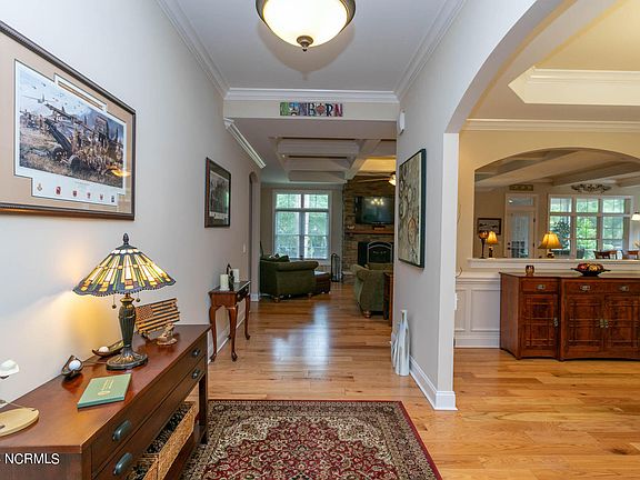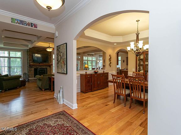 This gorgeous 4-bedroom/4-bath home is tucked away on over an acre of land at the end of a private cul-de-sac in the Donald Ross neighborhood - one of Pinehurst's most prestigious locations! Custom built in 2015 by one of the area's best builders, it has over 4,000 square feet. It features a bright and open concept design with hardwood flooring or ceramic tile throughout, loads of custom design features and storage galore. The Great room has a stone fireplace, vented gas logs and a solid wood mantle, media, and surround sound and custom shelving. A well-appointed gourmet kitchen offers an abundance of cabinets, a center island, walk-in pantry, butler's pantry, breakfast bar, and stainless-steel appliances. The upper level has a large family room with separate media room. It offers wonderful outdoor living area. A screened back porch has a brick fireplace and gas logs, covered cooking porch with gas hook-up for grill and a large open patio area. There is a spacious 2-car garage with mudroom entry and his and hers closets as well as a second garage with workshop. Both with versatile bonus rooms above them. Also comes with a transferable Pinehurst CC Charter membership. **Showing begin 6/1/24**