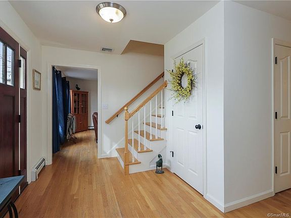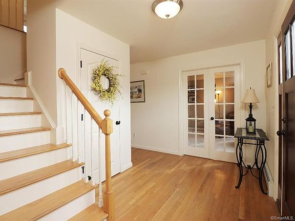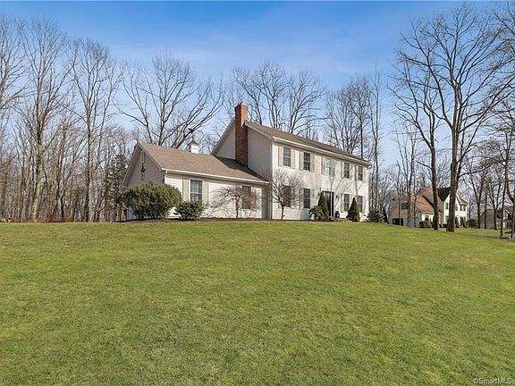 Beautiful 4 bedroom 2.5 bath colonial on the perfect 1.2 acre lot on quiet cul de sac! Great flowing layout featuring large main level family room with brick fireplace. Center island kitchen with newer stainless appliances. Formal dining and living room. Hardwood floors. French door. Master with huge walk in closet and private bath with double sink. Central Air. Freshly painted interior. 2 cat attached garage. Lower level game room and still lots of storage. Large low deck overlooking awesome yard with stone wall is great for entertaining and pets. Shed. Property borders open space for even more privacy. Level cul de sac for the kiddos to bike and play. Great schools and low taxes.