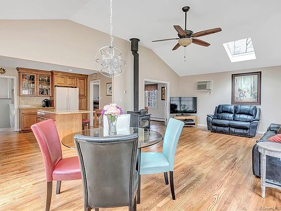 Located in one of the most desirable neighborhoods in Monroe, this expanded raised ranch has a wonderful family room addition that is the focal point of the home. A wood-burning stove anchors the room and the vaulted ceiling creates a great open feel. The family room features hardwood floors, skylights, and picture windows overlooking a large backyard. It leads seamlessly into the kitchen with center island and granite counters. There are hardwood floors throughout the main level. The living room has a bay window, and the dining room has french doors that lead in to the family room. The three bedrooms have wall-to-wall carpeting (with hardwood underneath, per owner). Downstairs has been expanded as well, with a large playroom with sliders to the back yard, an office with pellet stove, and a den/guest room. This home has a wonderful, over-sized deck, plenty of storage and an attached two-car garage. Great opportunity to enjoy a terrific neighborhood setting while taking advantage of Monroe's award-winning schools! Updates and Improvements: Finished lower level family room * Installed new driveway * Installed granite counters * Expanded Deck * Installed Ridge Vent * Remodeled hall bath * Professionally landscaped front yard * Replaced front walkway * Installed wood burning stove * Installed pellet stove * Installed greenhouse * Replaced master bedroom tile * Installed security system * Refinished hardwood floors * Painted interior