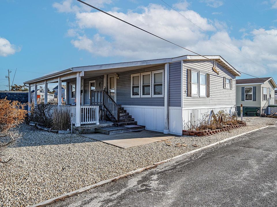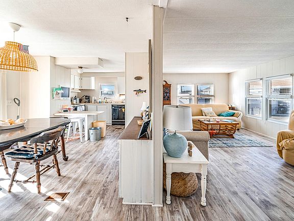 Welcome to this WONDERFUL 3 bedroom, 2 bath home with WATER VIEWS of the BAY! A large COVERED DECK greets you and your guests and leads to a SPACIOUS floor plan. Enter to find beautiful LUXURY VINYL flooring that extends throughout the main living areas. BRIGHT and OPEN, the living room leads to the dining room where you will find a sliding door to a SECOND DECK, bi-fold doors that open to the laundry area, with a washer and dryer, and adjoins the kitchen. A BREAKFAST BAR that easily seats 4, plenty of cabinet and counter space, and a full complement of appliances complete this space. An OVERSIZED primary suite offers a ceiling fan and a private bath complete with a vanity and a tub/shower combo. TWO ADDITIONAL guest bedrooms are also GENEROUSLY SIZED and share the full hall bath that includes an extended vanity, under cabinet storage, and a tub/shower combo. Head outside to RELAX on your covered PATIO with plenty of room for an outdoor table/chairs and a BBQ grill. A STORAGE SHED is included and perfect for storing your beach gear and outdoor equipment. ZERO MAINTENANCE yard means more time for RELAXING and 2 OFF STREET parking spots for you and your guests. The LOCATION can’t be beat! Situated on THE BAY with QUICK ACCESS to all that WILDWOOD and THE CREST have to offer including restaurants, shopping, entertainment, and of course the FAMOUSE WILDWOOD BEACH!