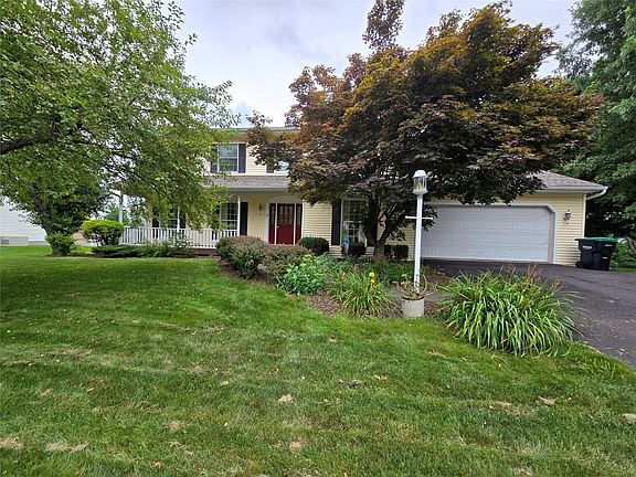 This Center Hall Colonial has 4-5 bedrooms & 3 full bathrms & w/ almost 4,500 hundred sq. ft of living space! The entry is very welcoming w/ the large front porch it’s perfect for relaxing! The two-story foyer draws your eyes to the elegant staircase winding up to the loft area & bdrms. The Skylights are throughout & bring in loads of natural light. This 1st flr has an office/5th bdrm w/access to the full bth, a formal living rm & dining rm. The spacious kitchen has updated granite counters & a large Island w/newer gas cook top. The wall ovens & dishwasher were just replaced this year along w/ the new gas fireplace in the first flr family rm. The vaulted ceilings in this room w/skylights gives you a contemporary feel. The French doors lead to the 2nd story deck great for all your cookouts! The 2nd floor has 3 bdrms to include a large primary w/ensuite and a Hollywood bath. The walk-out LL has another bedrm, family rm, & storage & cedar closet. List of updates attached!