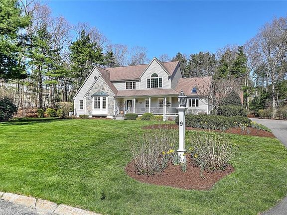 Exceptional custom home on a private cul-de-sac in prestigious Forest Park. The charming front porch beckons you into an impressive 2-story foyer, which sets the stage for soaring ceilings and multiple skylights throughout. Sunny living room with a bay window and a formal dining room with gorgeous built-in cabinetry. The sun-drenched skylit gourmet kitchen offers a vaulted ceiling, extensive custom cabinetry, high-end appliances including a 6-burner Wolf cooktop, Sub-Zero refrigerator, double ovens, 2 sinks, and a breakfast area with floor-to-ceiling windows, all open to the family room featuring a gorgeous stone fireplace, bar area, and access to a deck overlooking the yard. Outstanding skylit primary suite with a luxury bath and a large walk-in closet. An office, laundry room, mudroom, and powder room complete the 1st floor. There are 2 staircases to the 2nd floor which offers a fabulous bonus/media room, and 3 generous bedrooms, each with their own bathroom. The expansive finished basement has a kitchenette, dining area, game room, exercise room, and full bath. Convenient 2-car attached garage plus a detached garage/pool house with a bath, kitchen, and loft area perfect for extra guests. The delightful landscaped yard has a heated gunite pool and hot tub, all with wonderful privacy. Great location - easy highway access to Providence and Boston. Enjoy excellent public schools and great local attractions like the Xfinity Center and Gillette Stadium. A very special property!