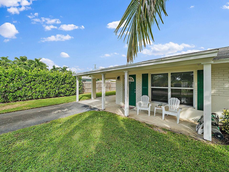 Highly sought after single family home in Riverside Drive Park of Jupiter! Enjoy the many perks of this Jupiter home located on ''the Tequesta side'' of the Loxahatchee River, just a 5 minute walk to shopping and dining at Gallery Square North, Perk Coffee Shop and more! Drop in a paddle board or kayak at the Riverside Drive waterway access, and enjoy Friday night food trucks at the newly redesigned Constitution Park, all with in walking distance. This CBS home is a 2 bedroom, 1 bath with a carport and large indoor laundry room. The backyard is spacious, fenced and offers plenty of room for a pool, lanai and summer kitchen.