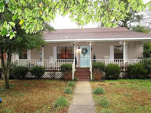 This cute, cottage style house is nestled on a circular drive. There is a living area and a large den. You will love your over sized master bedroom and bath. The 2 additional bedrooms are located at the front of the house, affording this house a split floor plan. Relaxing on your large front porch will be your favorite past time. You will be living in the city but experience the feeling of country on this property. Double carport and adjacent lot conveys with sale. Call today for an appointment!