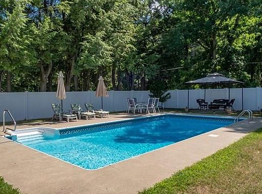 Summer Oasis !! Feel like you are at a resort with your very own private in-ground pool surrounded by gorgeous white vinyl fencing. This classic center hall colonial has it all. Large family room addition between kitchen and garage has cathedral ceilings and sliders out to a trex deck. Beautiful kitchen with granite & stainless appliances, original formal living room is being used as an enormous dining room for entertaining in style. First floor bedroom and full bath off kitchen. Extra large master bedroom with walk-in closet, full bath and two additional bedrooms upstairs. Finished room in basement is being used as a gym but could be office, guest room,play room or whatever you need it to be. Great cul de sac neighborhood conveniently located to everything you need !! No Showings UNTIL Open House Sunday 12 - 2. All offers by Tuesday at 7:00 pm