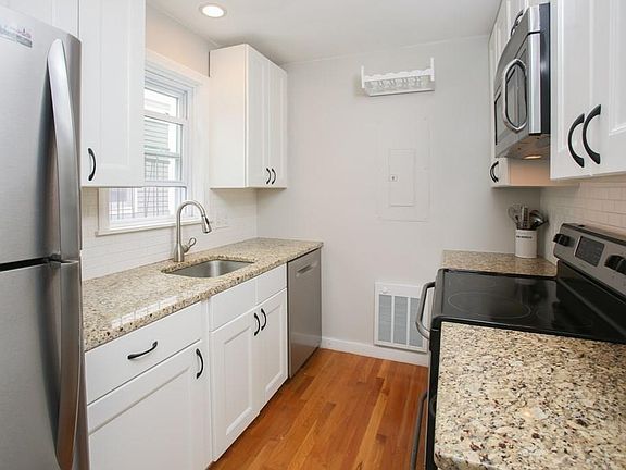 Location, location, location! Situated in the sought-after gas light district, just steps from Charlestown's restaurants, bars & shops, this 1 bed, 1 bath home is rare-to-market! Renovated kitchen with stainless steel appliances, granite counters adorned with a subway tile backsplash & tall white cabinets. The renovated bath has frameless glass shower with tile surround & a crisp white vanity with marble top. The spacious living room boasts hardwood floors gets ample natural light through its corner exposure. The master bedroom features hardwood floors and a custom designed closet with direct access to the private roof deck. Ductless central air and heat have been recently added. The jewel of the home, the large private roof deck, recently rebuilt, is the ideal spot for relaxing after work. A home at this price point , location and condition will not last!