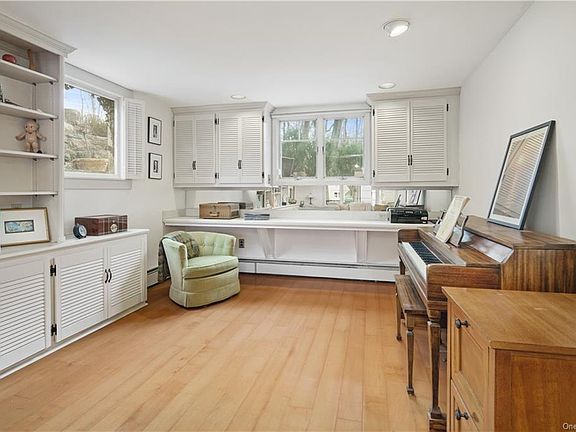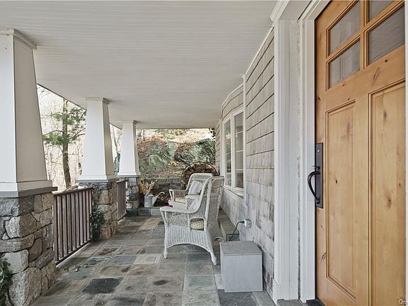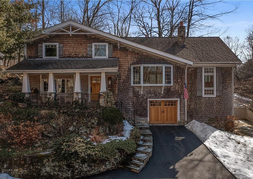 Croton Village Charmer Loaded w/Arts & Crafts Styling. Welcoming front porch. Front-to-back living room w/built-ins & 3 exposures. Entry-level full bath w/radiant heat. Great Room (front-to-back open kitchen/family room combo) w/high ceiling, stout & hearty stone-front wood-burning fireplace, dramatic front-facing bay window & slider to rear deck. Kitchen area w/stainless steel appliances, granite countertops & island w/breakfast bar. Striking windowed dining room w/pocket French doors, vintage wood trim, brawny exposed beam cathedral ceiling & dramatic staircase descending to lower level. Three comfy bedrooms & updated hall bath up. Walk-out lower-level recreation room w/high ceiling & transom-topped slider to yard; Bedroom w/ensuite bath w/shower & radiant heat. Hardwood floors throughout except baths. Natural gas utilities, municipal water & sewer. Walk to elementary school & playground. Sidewalk to village. Short drive to Croton-Harmon station (MTA, Amtrak) for easy commute.