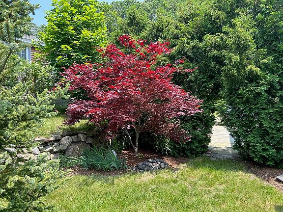 Beautiful ranch/bungalow style home. Nicely landscaped, loaded with mature perennials.Walk through tall hedge to what feels like a secret garden, a patio made from Vermont slate, tiered stone walls for gardening. Freshly sealed driveway, plenty of parking. Oversized deep garage, two garage doors and man door as well as a work bench, lots of room to get things done. Entry from basement into two freshly sheet rocked rooms with 3 large closets, electrical is finished.Ready for an extra 500+ feet of additional living space. Utility room, spotless forced hot air furnace and electrical. You can walk out to a private patio from one of the basement rooms. Upstairs, open concept main living area with 11 foot ceilings, crown molding, bamboo flooring and gas fireplace. Over sized Anderson windows, 400 series. Tall kitchen cabinetry in this chefs kitchen, nice deep sink , all appliances are stainless. 3 season room with beautiful custom designed hardwood floor that opens to patio.Three big bedrooms, to full baths. Primary has soaking tub, 5 foot shower. Both baths have heated floors. First floor stackable washer and dryer. Ceiling fans in all rooms. This home is in great shape, move in condition. Easy highway access.