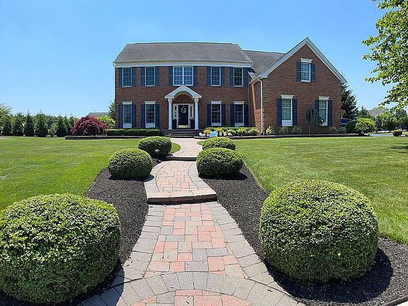 Gracious Toll Brothers Center Hall Colonial just a short walk to the Chesterfield Village Square and elementary school. This gorgeous home sits on almost an acre lot, expanded driveway with a 3-car garage, an over-sized paver patio, mature landscaping, sprinkler system, and a brand new play set. Enter the 2-story foyer with hardwood floors extending throughout the first floor living space. Formal living and dining rooms are outfitted with molding and chair rail. Total kitchen remodel completed in 2018, featuring a Wolf range, quartz counter-tops, stainless steel appliances, large center island, farmhouse sink, and bonus sitting area. The dramatically over-sized family room with vaulted ceiling offers a wood burning fireplace for those cozy nights and cable/satellite accessibility. Double French door den space provides an exquisite aesthetic look and privacy for an office space or study. The upper-level hardwood flooring leads to the Master Bedroom with sitting room, tray ceiling, a private bath that includes a glass stall shower, his and her vanities, and a relaxing Jacuzzi tub. Two bedrooms share a full bathroom with dual sinks and tiled tub. A princess suite with a private bath rounds out the 2nd level. Head down to the finished basement where you will find a half bath, custom bar, large home theater, dedicated workout room, and ample storage space. New water heater in 2019 and 2nd floor HVAC replaced in May 2021. Much more to see!! Showings by appointment only. Please email kebreiland@gmail.com or call 609-947-1243. No realtors please.