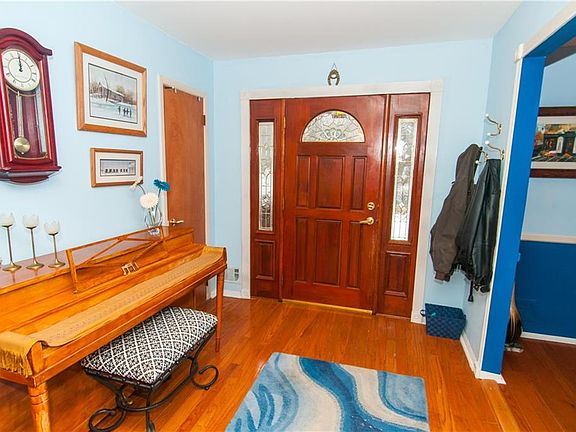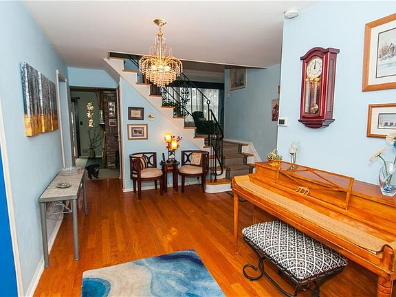 Seconds away from the NYC bus line this lovely colonial offers privacy, updated kitchen w/ granite tops, crown molding, soft close drawers, under cabinet lighting and tile floors. Inviting family room with brick wood burning fireplace and sliders to fenced private backyard. Spacious living room with cathedral ceilings and wood floors can be used for myriad of purposes. Master bedroom with remodeled and extended ensuite bath. Double sinks, extended shower stall with stone tile floor, large jetted tub and linen closet. Hardwood floors throughout second floor. Hall Bath was also extended from the original design. HVAC 1 year old and new hot water heater. Close to all major roadways, NYC Bus and train, shopping, restaurants and so much more.