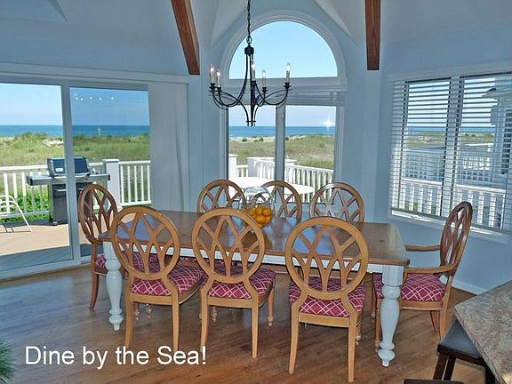 Lovely, 6 bedroom, 5 bath beachfront with great ocean views and quality appointments including quartz countertops, tile and marble baths and hardwood flooring.