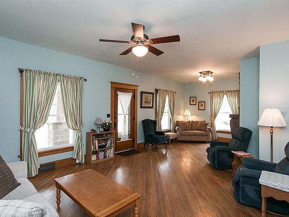 Beautiful 1918 Two Story with original quarter-sawn oak throughout. You'll love all the details from the glass french doors to the diagonal wood floors. Formal dining space in addition to the eat-in kitchen. You'll find 3 nice sized bedrooms on the 2nd floor, a full bath, large laundry room & a bonus sun room. Relax on the large front porch or entertain on the back deck. New roof in '11 and the windows have been replaced in recent years. Quick 15 min. drive to Iowa City. Don't wait, you'll miss out!
