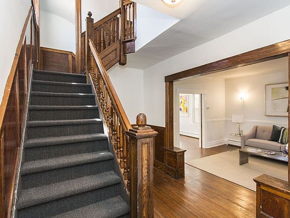 This 2,348 SF, 5 BR home is on a double lot which allows for a private driveway, large garage, and massive backyard space. The house has been recently updated with refinished hardwood floors, fresh paint, hardware, and appliances throughout and a new boiler. As you enter, you're greeted by a sprawling living room with open pocket doors that lead to a separate dining room, which reveals the nearby kitchen. The kitchen has granite countertops, custom cabinetry, and SS appliances, including a dishwasher. The second floor has 3 bedrooms, each with individual closet space and rich hardwood floors. The large finished attic offers loads of storage space and can be a flexible bedroom, study room, etc. The exceptional location is just minutes from the 45th Street Light Rail Station and Stephen R. Gregg Park.