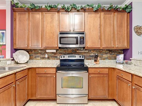 VALUE PRICED TO SALE! Lushly landscaped and beautifully appointed Bluffton Park home overlooking park. Two covered porches on front (one screened) and screen porch in rear viewing privacy fenced gardens with established shrubbery and evergreens. Roomy kitchen has granite tops, 40" cabinets with crown molding, beveled back splash and stainless appliances. Dining options include bar top, casual dining area and dining room with chair rail molding. Great room with fireplace leads to rear screened porch. Master bedroom opens to upper screened porch, bath with shower and soaking tub with ship lap wall accent. Golf Cart ride to Old Town.