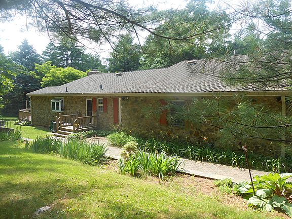 ELEGANT FIELDSTONE RANCH NESTLED ON A PASTORAL LOT OFFERS RELAXED LIVING and MODERN AMENITIES. NATURAL LIGHT FLOWS THROUGH THE LARGE, WELCOMING ROOMS YET HOUSE HAS COMPLETE PRIVACY. RANDOM WIDTH OAK FLOORING. SPACIOUS LIVING ROOM W/FLOOR TO CEILING STONE F/P. FORMAL DINING ROOM AND STEP DOWN DEN CREATE A HAVEN FOR HAPPY HOLIDAY GATHERINGS. THE KITCHEN W/GRANITE COUNTERTOPS IS A COOKS DREAM FEATURING GARDEN WINDOW OVER THE FARMHOUSE SINK AND COZY BREAKFAST NOOK W/BAY WINDOW. SPACIOUS M/BR W/LUXURY BATH SUITE INCL. AIR TUB, TILED SHOWER AND HEATED FLOOR. HUGE OPEN F/RM WOULD MAKE A FINE HOME OFFICE CENTER, OR HOME THEATRE. CARRIAGE HOUSE WITH 4 CAR HEATED GARAGE, WORKSHOP, AND ARTIST STUDIO. 15 MIN TO RT 78, NYC BUSES, SHOPPING, AND MINUTES TO DELAWARE RIVER ATTRACTIONS AND BUCKS COUNTY.