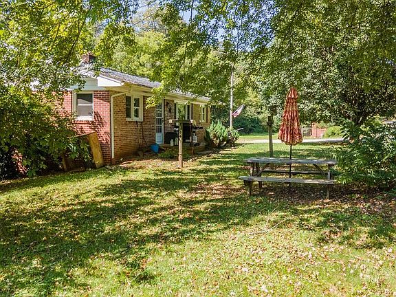 Super cute brick home, all one level on 0.87 flat acre yard bordering a beautiful branch with two cleared out access points. You could have plenty of room for a play area outside or your own mini farm on this level, open lot with large storage barn and canning shed/chicken coop, great garden area, firepit and row of grapevines. Easy access so park your RV or have friends visit with theirs. This home has large rooms, plenty of storage yet it is still comfy and cozy. Beautiful hardwood floors throughout. This is a must see house close to town!