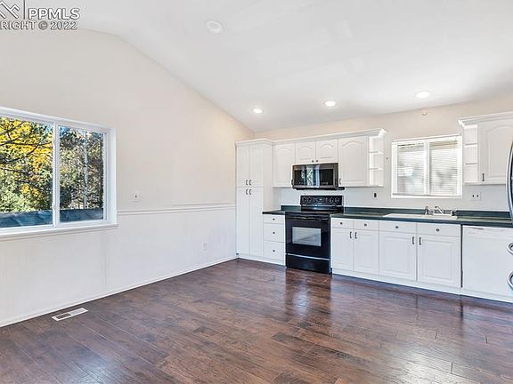 Peaceful mountain living! Welcome home to this updated raised ranch on just under an acre. New floors and fresh paint greet you, along with an abundance of natural light. The main level master bedroom and laundry room offers excellent convenience, and walks out to the rear deck. Kitchen includes updated appliances, an ample amount of cabinets, and a pantry. Head downstairs to a large family room, another bathroom, 2 additional bedrooms and a den/office room. RV parking and an oversized 2 car garage with a shop make this a perfect mountain get away! Just minutes from Woodland Park and Cripple Creek, and about an hour from Gold Medal fishing and skiing. Close to town, but secluded, and convenient to recreational entertainment of all kinds!