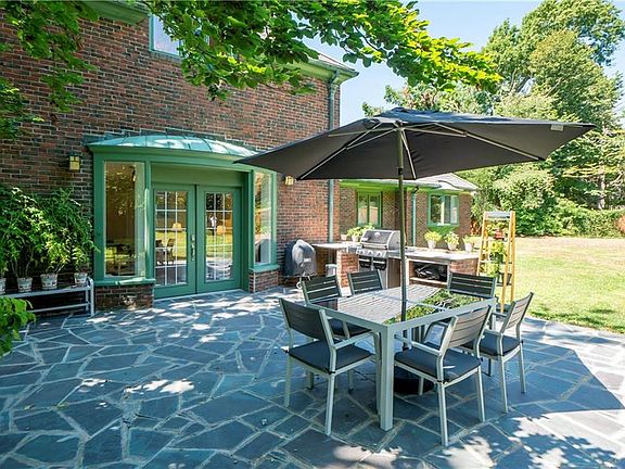 Vacation every day: Enjoy your own French Provencal cottage on a lush acre located in walking distance to beach and town. Secluded behind a turreted brick wall intertwined with Wisteria, lies this unique, recently-updated home in the Estates/Ochre Point neighborhood. Relax while you listen to the sea breeze ruffle the leaves of century-old specimen trees on your fully-enclosed park-like property. Forget where the light switches are as you relish the amazing natural light afforded by this home's being sited perfectly on its lot. Entertain in your choice of the kitchen/dining area, while your guests sip and nibble at the pass-through bar, or the living area, spilling seamlessly onto both the patio with built-in gas grill and the glassed-in porch/winter garden. In the winter, cozy up there or in front of either of the two fireplaces, one in the living room and one in the master bedroom with ensuite bath, secure in the knowledge that the solid brick and slate construction will keep the chill (not to mention maintenance costs) at bay. Should you ever feel the need to leave, stroll to Cliff Walk in steps, or First Beach and Thames St. in minutes.