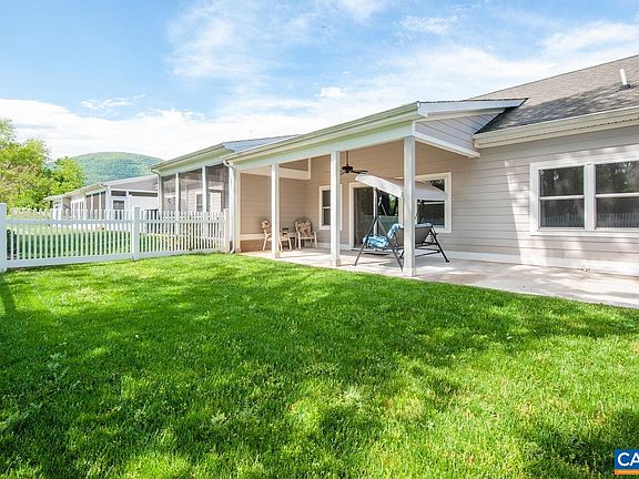 Nearly new with views! Rare opportunity to have easy, one-level living in a beautiful setting with back covered patio overlooking a fenced yard with mountain and pastoral views. Get the best of both worlds with a private, rural feel and still have such conveniences.Take the walking trail and be within a few minute stroll of Nellysford town hub with grocery, dining, doctors, banking and more. Only minutes to amazing outdoor recreation (skiing, golf, hiking) and the Nelson 151 wine and brew trail; 30 minutes to Charlottesville. Extras: Open flow with 10’ ceilings and luxury vinyl plank flooring, great room and dining open to a gourmet kitchen (huge breakfast bar, pantry, granite countertops, stainless steel appliances, and lots of cabinets!), primary ensuite (granite vanity top, tile shower, and walk-in closet), guest bedroom on opposite end, den (or home office/extra sleeping space), laundry with storage (granite top with sink, cabinetry, and walk-in), garage with ample storage, covered front porch, paved driveway, fiber optic internet. Enjoy life and not work; community provides mowing and common areas such as stone patio/firepit. As a Wintergreen property owner enjoy access to Rodes Farm pool, tennis, and pavilion.