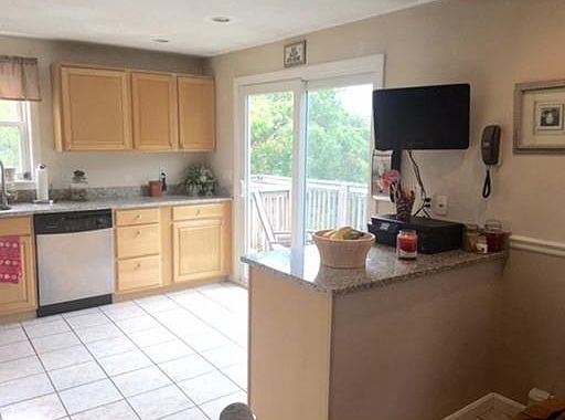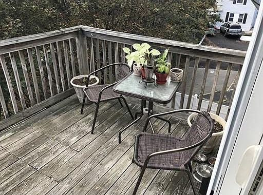 Open house canceled (due to multiple offer situation/ offer acceptance prior to open house.) Very modern, open 3-bedroom upper unit. Features include: kitchen with granite counters, stainless steel appliances, fresh interior paint, modern bathrooms, and private (fenced) backyard area. Hardwood and tile flooring. Laundry in unit. Master bedroom with private bath. Situated at the (very quiet) end of a dead-end street. Enjoy a morning cup of coffee on your rear deck area, overlooking a view of Boston in the Fall. Low condo fee. 4 total (off-street) parking spaces. The (above ground) pool and much of the furniture can easily be included (or removed from the home) as it suits the buyer's preferences. This home is ready for you when you are. Easy to show (with 24-hour advance notice)