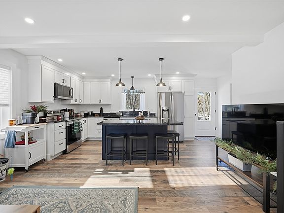 Welcome home to this beautifully crafted 2025 new-construction single-family home, built on the original foundation and offering 1,680 sq ft of thoughtfully designed living space. This 3-bedroom, 2-bath home features a desirable first-floor primary bedroom with en-suite bath, perfect for easy living. The bright, open-concept layout is filled with natural light and highlights wide-plank flooring, recessed lighting, and modern finishes throughout. The kitchen shines with white cabinetry, stainless steel appliances, a large center island with seating, and stylish pendant lighting—ideal for everyday living and entertaining. The inviting living area flows seamlessly from the kitchen, creating a comfortable space to gather. Additional features include energy-efficient systems, ductless mini-split heating and cooling, updated bathrooms with modern fixtures, and a charming covered front porch. Move-in ready and thoughtfully designed, this home blends comfort, quality, and modern convenience.