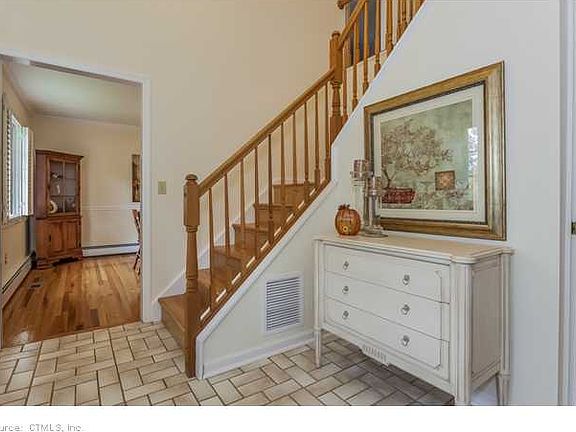 Welcome home to your lovey colonial nestled on 1.42 acres with a welcoming front porch. This home features a spacious, eat-in kitchen with ample cabinets and counters for your cooking and dining pleasure. The formal dining and living rooms have hardwood flooring and are welcoming and inviting. You'll love the first-floor family room with cathedral ceiling, fireplace and sliders to your spacious deck and patio overlooking the private lawn. There is also a small office or library on the main floor. Upstairs, the master bedroom is 18' x 13' with hardwood flooring, a walk-in closet and full bath. Plenty of space for family and friends in the additional 3 bedrooms with gleaming hardwood flooring. The lower level is unfinished but great for storage or as a workshop. There is a 2 car garage and level, paved driveway. You'll enjoy the central air conditioning during the summer and the efficient oil hot water heat during those cooler months. Make the call today and begin the new year in your lovely Woodbury home.