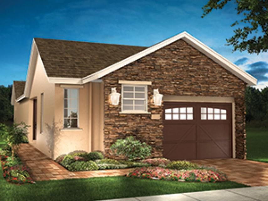 The Amalfi takes after the sun-drenched Italian coastline that inspired its name, offering front and rear courtyards that take advantage of the beautiful Florida weather. A narrow courtyard leads visitors back to the home's entry. Step inside to the comfortable living room, kitchen, and dining room, an open-concept area that makes excellent use of space and instantly makes you feel at home. The generous kitchen island with built-in sink and dishwasher is an effortless hub for entertaining guests. Set out cocktails and appetizers as friends and family move from the island barstools to mingle about. This entire living space overlooks the side patio, which is just the right size for an additional dining table and loveseat. Add optional triple sliding glass doors to the living room/dining room wall and you can truly expand your living space, letting the breeze flow through your home on temperate days. Just off the kitchen/dining area is the master suite, a relaxed and inviting escape that you'll appreciate day and night. Start your morning with a cup of coffee in the attached covered patio that leads into Amalfi's backyard, which wraps around the side of the home. An alluring walkway and landscaping join the two outdoor spaces. At the end of the day, pamper yourself in the exquisite master bathroom, which boasts dual vanities, a spacious shower, and a walk-in closet. At the front of the home, a second bedroom with nearby bathroom is the ideal retreat for guests visiting for th