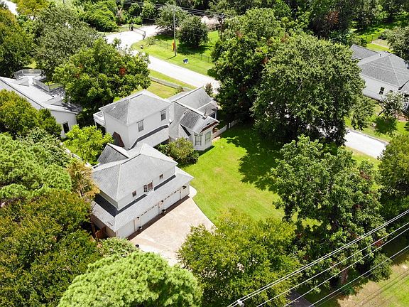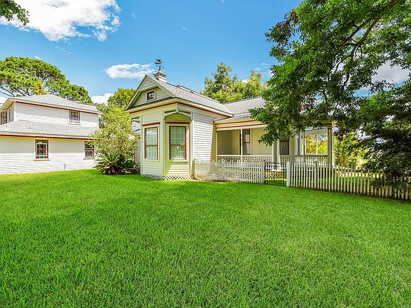 This 1.95 acre 1906 Queen Anne Victorian home with views of the bay is a history lover's dream! Listed on the National Historic Registry, it is sold furnished with it's Queen Anne period antiques. Home is 27 feet above sea level and has never flooded. The property includes the 2 bedroom 2 bath home, a 3 plus car garage with garage apartment, 1500 sq ft 4-car carriage house built in 2015 in the style of 1906, small shed and large storage shed. The structures are built on a hill and the 1.95 acres slopes down to "the flats" and a large forest. The main house has a wrap around porch with views of the bay. Some of the features of this amazing house are 2 claw foot tubs, several antique English stained glass doors, two original stained glass windows, original long leaf pine floors through most of the house, an antique kitchen island, antique chandeliers, and much more! See photos and the history and features sheet for more info. Sq. footage and room numbers don't include garage apartment.