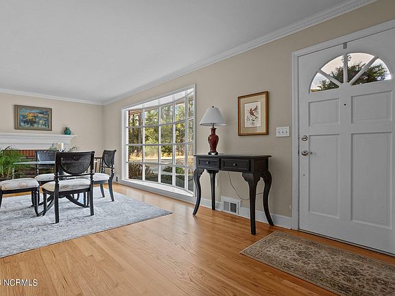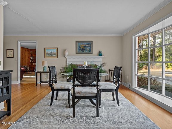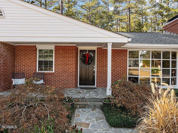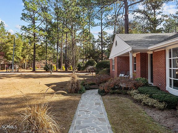 All brick ranch in a premium location just minutes from the Village of Pinehurst and all Resort golf courses and less than 5 miles to downtown Southern Pines. A short-term rental certificate included! As you enter the home, there is a beautiful dining room with a wood-burning fireplace and a stunning bay window. Down the hallway there are 3 bedrooms and 2 full-bathrooms. The large family room has panoramic windows throughout providing tranquil views of the beautiful back yard. It also provides an additional eating area and perfect gathering place for family and friends. Step out of the family room on to a large brick terrace that is perfect for entertaining. The cozy wood-paneled den offers another wood-burning fire place and built-in book shelves. Additional features of this light-filled home include hardwood floors, spacious laundry room, a 2-car garage, beautiful crown moldings and so much more. The home sits on a beautiful double lot with mature landscaping adorned with hardwoods, pines and over 10 varieties of Japanese maples.