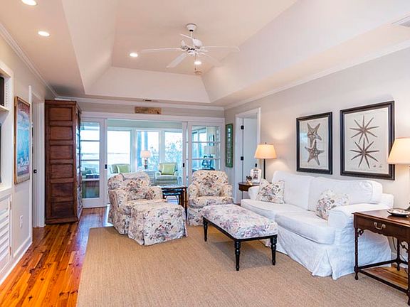 90 Belmeade Hall, a three-bedroom, two-and-a-half bath Inlet Cove Cottage, has undergone extensive renovations and updates that not only increased the total square footage of the Island getaway, but also expanded the interior and exterior spaces where owners and guests can enjoy the unparalleled tidal marsh, Kiawah River, and Atlantic Ocean views. New front stairs and a refinished porch welcome you to the waterfront cottage, which is modern and easy to maintain with an open layout that combines the living and dining rooms. The bright, coastal atmosphere of the great room is enhanced by beautiful pine hardwood floors and tray ceiling, attractive crown molding, and new Pella® windows and sliding glass doors. A sunroom was added adjacent to the living space and boasts nearly 360-degree marsh and river views, creating a space where you're surrounded by Kiawah's natural beauty and wildlife. Sliding glass doors open to the back deck, which is an unbelievable spot to enjoy the sunset at high tide and watch the dolphins frolic in the water. In the remodeled kitchen, new granite countertops and custom cabinets, beadboard ceiling, and stainless steel appliances come together to create a space that is both efficient and pleasing for preparing meals and entertaining. The master bedroom is comfortable with an updated private bathroom with a soapstone countertop on the vanity and walk-in shower. Doors from the bedroom open to the deck and allow cool sea breezes to flow inside. Two guest bedrooms offer additional comfort for family and friends, and share a full bath. Additional highlights of the cottage include a new Rinnai® hot water heater, an enclosed storage room at ground level, and a large outdoor shower. 90 Belmeade Hall is also available with a Sports Membership to the private Kiawah Island Club. Located within Inlet Cove, a wonderful water-oriented community in an established part of the Island, owners and guests enjoy access to an Olympic size community pool and dock. This specific cottage is also the closest in the neighborhood to the beach and just minutes to Freshfields Village via a bike ride along Kiawah's extensive trail system.