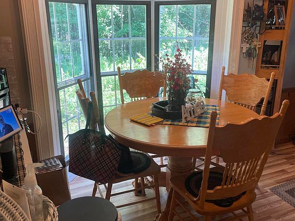 Good sized barnStone workFlower bedsNice deck on frontQuiet dead end stFruit trees