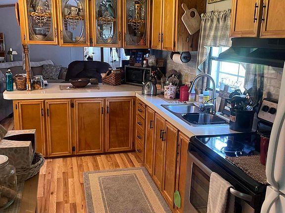 Well kept 2 bed 2 bath home . On quiet dead end st . Large lot is beautifully landscaped. Many flower beds , fruit trees ,stone work , nice deck on front . Good sized barn for animals or storage. Private and peaceful living. About 1/2 hour drive to several larger towns