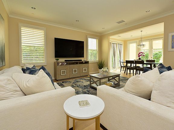 Fully furnished detached home with all wood flooring throughout. Located on a corner lot with private courtyard entrance and a wide backyard in Irvine. 2,387 sq ft, 4 Bedrooms with 4 full baths, features a convenient 1st floor bedroom and full bathroom layout. 2-story with 2 car direct access garage. The 1st floor includes living room, great room dining area, large kitchen island and a walk-in pantry. The 2nd fl includes the primary suite, 2 large guest bedrooms each with ensuite baths, work/study space, and convenient laundry room with front loading washer and dryer. Walkout patio with comfortable seating and gas fire pit. Walking distance to parks, pool, spa, school and shopping center. Short term lease is ok. Available for lease term for minimum of one month. Rates will vary if shorter than a 12 month lease at $6000/month. Fabulous floor plan with popular great room, Sunny conservatory room and convenient inside 2nd floor laundry room with cabinetry! Designer upgrades include custom paint, upgraded flooring and baseboards, crown molding, plantation shutters, French doors, recessed LED lighting and carpeted stairs. Gourmet kitchen includes solid granite counters, large center island, stainless steel appliances, built-in microwave, and walk-in pantry. Romantic primary suite features coffered ceiling, walk-in closet, bidet, and master bath with upgraded counters and a separate shower and soaking tub! Located in the highly desired westside of Stonegate with ample guest parking! Enjoy award-winning Irvine schools including the top rated Stonegate Elementary and resort-style amenities within walking distance including sparkling pools and spas, tot-lot playgrounds, basketball, tennis, sand volleyball and much more! Conveniently located within minutes from the Woodbury Town Center! Irvine School District schools include, Stonegate (Elementary) Jeffrey Trail (Middle) and Northwood (High School) Owner pays HOA fee. Tenant pays all utilities and cable/WiFi