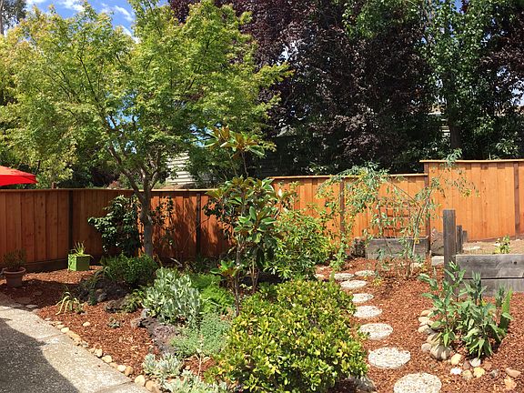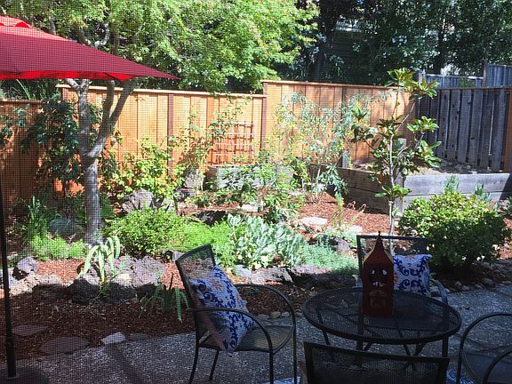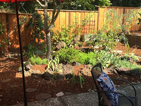 This is truly one of a kind. Beautiful garden is private and offers raised vegetable bed. New fence. Large front patio is also very private. High ceiling, double glazed windows and large sliding doors make this living and din. room very airy and inviting. Lots of improvements. Beautiful home is waiting for new Owner.