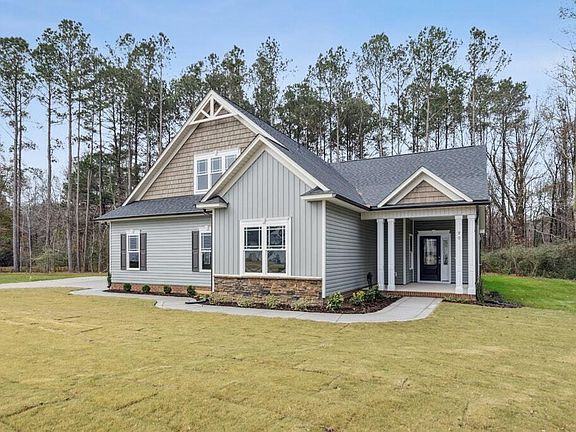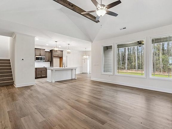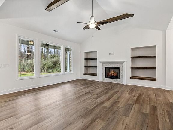 Step into this stunning 3-bedroom home that seamlessly combines luxury & comfort. Nestled in a serene cul-de-sac, this property offers privacy & tranquility. As you enter, you'll be greeted by gleaming luxury vinyl plank flooring that flows throughout the entire first floor, creating an inviting & cohesive space. The heart of the home is the spacious kitchen, featuring a built-in oven, a large island perfect for gathering, & an abundance of cabinets. The expansive living area, complete with built-in shelving & a cozy gas log fireplace, perfect to unwind & relax. Enjoy peaceful evenings by the fire, or step outside onto the covered porch & patio that overlook a stunning wooded backyard—your own private slice of nature! Retreat to the luxurious primary suite, boasting a tray ceiling that adds elegance & charm. The en-suite bath offers a soothing sanctuary with modern fixtures & ample space. The additional two bedrooms are generously sized, perfect for family, guests, or a home office. But that's not all! This home features a huge bonus room with a full bath—ideal for a playroom, media room, or guest suite! With a side-load garage & beautifully landscaped yard, this home blends comfort, style, and convenience.