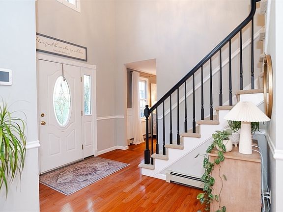 Welcome to this well-maintained Colonial set on a private 1.61-acre lot. The fully fenced yard offers privacy and charm, complete w/ a tranquil koi pond, outdoor brick pizza oven, and sprinkler system. Inside, you'll find a bright, spacious layout filled w/ natural light. The all-season sunroom is perfect for year-round enjoyment, overlooking the peaceful backyard. All 3 bedrooms are located on the second floor, along with beautifully updated bathrooms featuring modern finishes. The primary suite offers a relaxing retreat w/ a large soaking tub, walk-in closet, and plenty of space. The partially finished basement provides additional living space and includes a pool table for entertaining. An oversized, heated two-car garage offers room for parking and storage. Additional features include seller-owned solar panels for energy savings, a security system, and all appliances—including washer and dryer. This home has been thoughtfully cared for and ready for its next chapter!