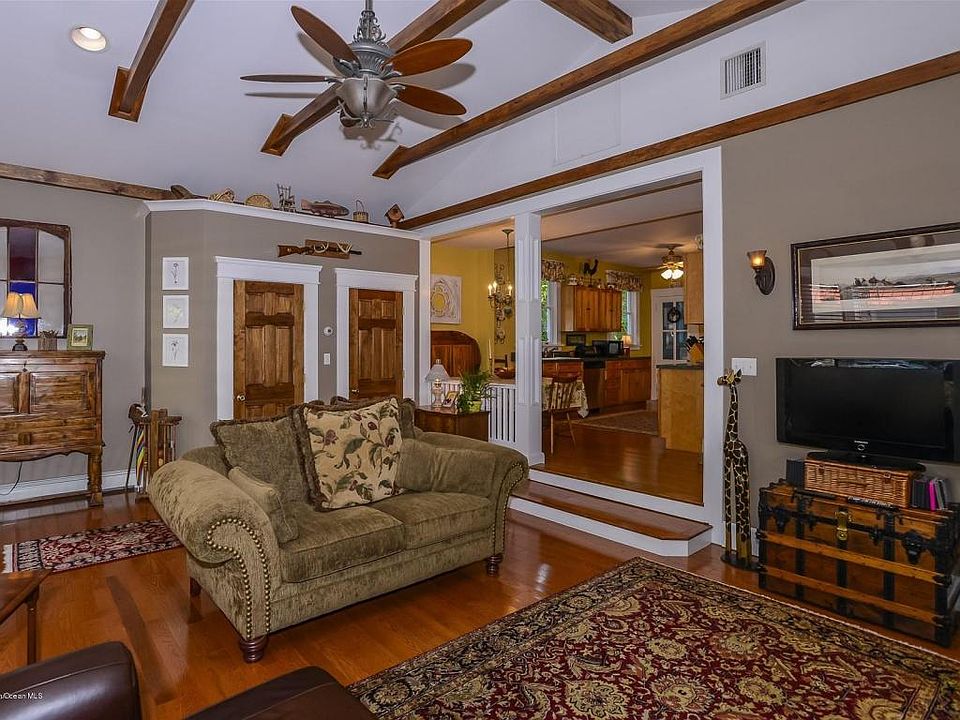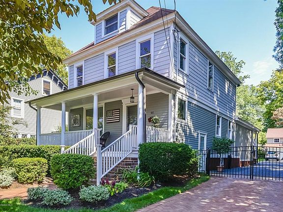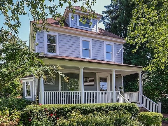 Opportunity awaits in this mint condition classic Red Bank Colonial. Enjoy the generously sized living and dining rooms with 9ft ceilings and open flow from eat-in-kitchen to the sunken family room with vaulted beamed ceilings. Four large bedrooms - two with built in storage, one with large closet and extra storage, bonus room off master. Front and back rocking chair porches overlooking the beautiful front and private lanscaped backyard. Fully finished basement with tile flooring, decorative molding, built-in bar and cedar closets. Bonus room over garage could be studio, workshop, art room or teen room. Walking distance to downtown Red Bank, restaurants and shops and easy distance to train, bus, ferry to NY. Just a short ride to area beaches. All room sizes are approximate