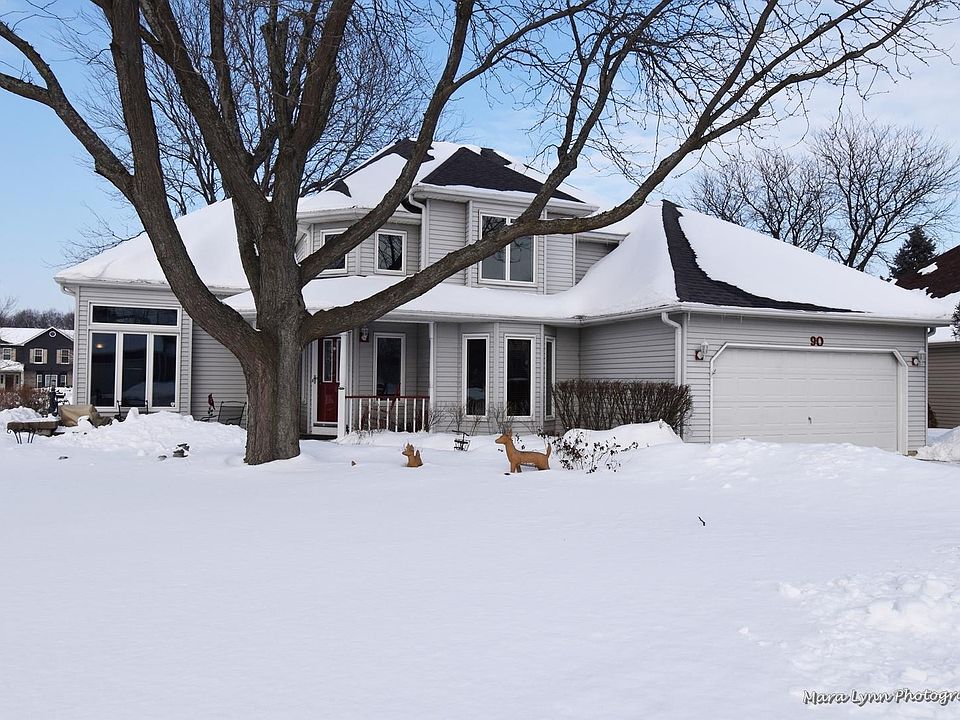 Beautifully kept 4 bedroom two story on a huge corner lot in Season's Ridge. The first floor master is large, with vaulted ceiling, big walk-in closet and private bath. The kitchen has an eating area, planning desk and island with storage. Family room with brick, gas log, gas start fireplace and French doors to the living room. Separate dining room. The basement is partially finished with a rec room, office space and work shop. There is plenty of storage in the tall crawl space. Enjoy the outdoors on the Trek deck, surrounded by the many perennials and pond. There is a shed for storage and leaf prevention system on the gutters.