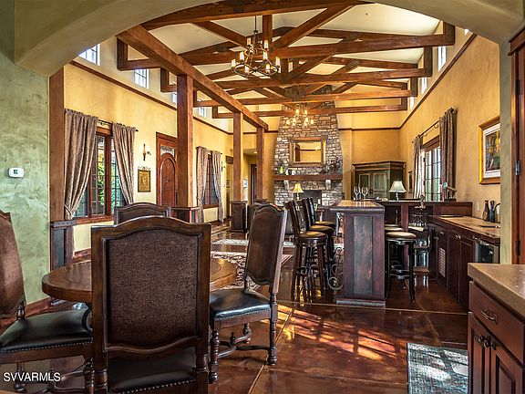 Influenced by old world Italy, this uber private hilltop villa is surrounded by shaded patios & decks. The main level speaks to entertaining & dining in rustic elegance amidst Sedona's views, spacious fireplace warmth & comfort. Wrapped around a courtyard you will find a primary owner's suite, a chef's kitchen, formal dining (opens to a patio outdoor pizza kitchen!), a guest suite w/fireplace, coffee bar, an executive office & laundry. Thrilling & opulent! Lower level is a simpler, calm & cream color vibe in the family room wrapped in views. Read, nap, watch tv, piece together a puzzle, or sit on the PRIVATE covered patio & gaze into the blue Mingus Mountains. Also on lower level are 3 additional bedrooms, 1 of which is a suite & 2 baths. 3 car garage with massive storage. See supplement.