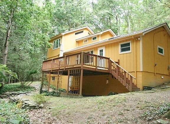 Very unique and beautiful Arts & Crafts style home situated on a private wooded 1.5 acre lot in Rustic Hills. Large back deck overlooks a babbling mountain side stream with a nice back yard with room for entertaining. This 3 bdrm, 2.5 bath home has been meticulously renovated to keep its character & charm including granite counter tops, freshly painted exterior, new roof, new Anderson Windows, new hotwater heater & updated baths. Enjoy the wood burning stove & exposed stone chimney in your oversized living rm w/cathedral ceilings, decorative wide plank barn siding walls & original hardwood floors. 2nd flr master suite offers a large California closet system w/pocket doors & a private bath. Just perfect all year round home or amazing vacation home for all who are looking to get away to peaceful Up State NY. All this minutes to Rt. 17, Metro North & the Bashakill Preserve. Must see to appreciate.