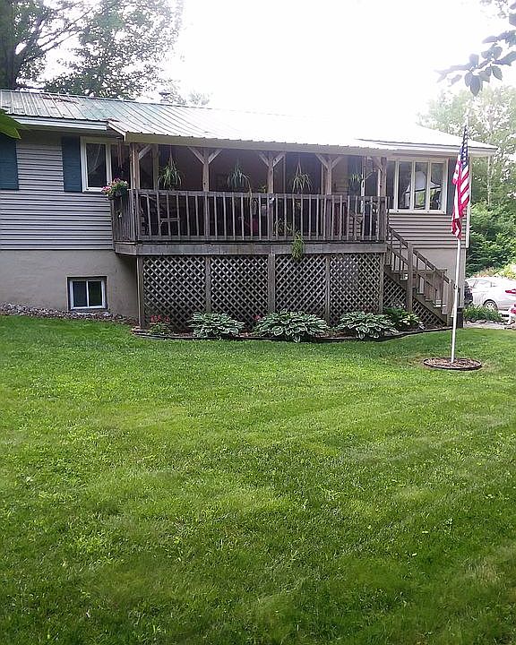 Ranch with walk in finished basement. Brand new propane heater and water tank. 4 Fujitsu split AC units. Living room and kitchen remodeled with hardwood flooring and all new slate appliances. Wood stove in basement. Farmers porch on front of house, 3 season porch in back with open deck ,lots of flower beds, fire pit with seating area in back of house. Built in sheds under porches and decks. Deck and porch is wired for speakers and power. Chicken coop in back yard.