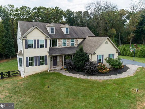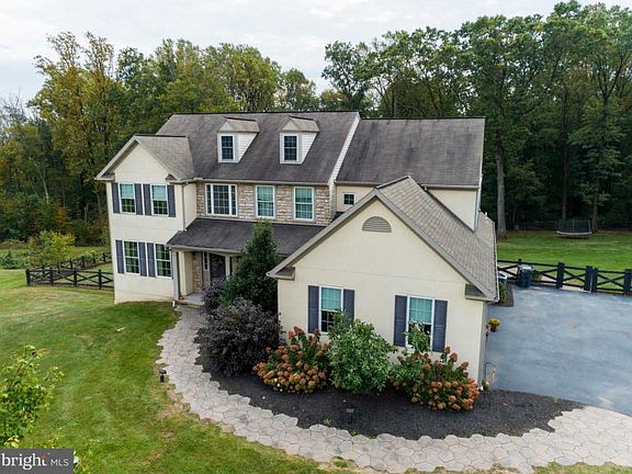 This home sits on the best lot in the Hidden Farm development. With over an acre, this home has been meticulously maintained and upgraded by the sellers. This 4 bedroom, 4.1 bathroom home has it ALL right down to the 3 car garage. Enter the foyer with the hickory hand-scraped hardwood floors that cover the entire first level to the Dining Room that has been upgraded with custom chair-rail and crown molding. The Living Room has a bump out bay window that adds even more natural light. First floor Office has great views of the fenced in, wooded, private back yard. The 2 story Family Room has a stone wall with pellet stove (which allows the heat expenses to remain low). The Kitchen has stainless appliances and granite counter-tops and a tile back splash. The first floor mudroom/laundry room has a custom bench with storage area to keep everything in its place. A half bathroom completes this level. The second floor has a master suite with the same hickory hardwood flooring, and master bathroom with double sinks, soaking tub and shower. The Master Walk In closet has been professionally designed and customized. There are an additional 3 bedrooms and 2 full bathrooms on this level. Each bedrooms' closet has been customized. The basement has been finished with a bar and entertaining area. The bar itself, wainscoting, flooring and exposed beam ceilings were all finished with reclaimed chestnut and walnut hardwoods. The basement is a walk out to the back yard and has a storage area and a full bathroom as well. The backyard is fenced in to pool code and is great for entertaining, complete with a double height cedar deck and pergola. And for those feeling youthful and adventurous, there is a custom tree house waiting for you in the yard. You can walk out the kitchen or the basement to get to your outside retreat. This home will not last!