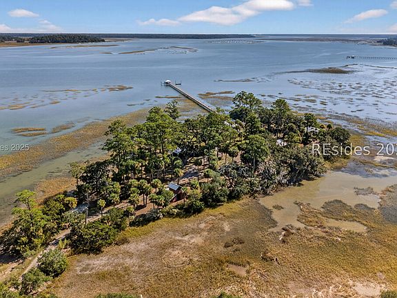Discover a rare opportunity to own a private oasis on Rabbit Island-where protected conservation land creates a natural gateway to complete seclusion. Here, the landscape opens to nearly 360 views of the Colleton River's sweeping marshes and shimmering tidal banks, capturing the essence of the Lowcountry. Enjoy a 15 minute boat ride out to the Atlantic Ocean, Hilton Head beaches or stay inshore and explore the Broad River's world renowned fishery, all from this exceptional location.This remarkable 2+ acre property-comprised of two lots and accessible via a short, private causeway-features a beautifully renovated 4 bedroom, 4 bath brick-and-frame home along with a workshop with 2 under cover parking bays, equipment shed, new dock, float, pier with 10K pound boat lift and barn complete with electricity and water. Experience the perfect blend of privacy, natural beauty, and modern comfort-an unparalleled island waterfront retreat with deep water access throughout most of the tide cycle. Includes adjacent lot R600-014-000-010A-0000.