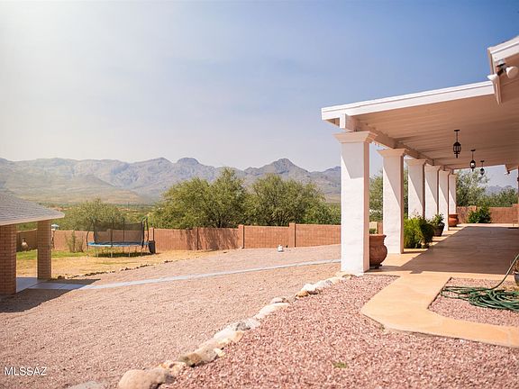 Beautiful Ranch Style home with beautiful views, BRAND NEW ROOF JUST INSTALLED!!! Energy efficient features, including solar panels (leased), owned Water softener system. Gorgeous and updated kitchen with granite countertops, and brand new appliances, formal living room with custom fireplace, entertainment/family/tv room, built in wet bar. Master custom walk in closet, updated master bath with double vanity sink and marble countertop, two shower heads, including a rain shower, spacious bedrooms, updated baths.Huge covered porch, completely fenced, built in barbeque with bar in carport, easy access and only 5 minutes to I-19. (Adjacent lot with parcel # 132-03-079, and BOSE Surround Sound System, will be included with an accepted full sales price offer) Owner/Agent